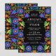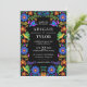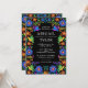 Colourful Mexican Fiesta wedding invitation with folk art flowers against a dramatic black background (you can change the colour to suit your taste). Great for Mexico destination weddings, Cinco de Mayo weddings or for someone who loves Mexican culture. Part of our Mexican Flowers collection.