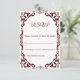 Celebrate your special day with this Burgundy Rustic Wedding RSVP Card, inspired by rustic elegance and natural earthy tones. Delicate white floral lace motifs on a warm Burgundy background create the perfect blend of rustic charm and timeless beauty. Ideal for outdoor, boho, or destination weddings, this RSVP card coordinates perfectly with the matching Burgundy Rustic Wedding Invitation and is fully customizable with your own wording and colors.