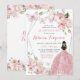 Mexican Silver Pink Floral Princess Quinceañera Invitation