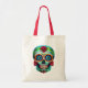 This colourful Mexican skull tote bag is a fashion accessory that is sure to communicate your style wherever you go. The skull design features a wide range of bright and bold colours, from deep blues to the rich red of the roses, creating a wonderful effect.