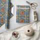 Mexican Spanish Floral Orange Blue Tile Pattern Wrapping Paper