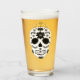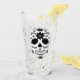 This glass has a traditional Mexican sugar skull design in black and white.