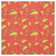 Cool fabric printed with a hand drawn food pattern of stuffed taco shells, cacti and chilli peppers on a bright red background