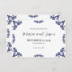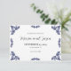 This Mexican Talavera Black Floral Minimalist Wedding Save the Date design features a minimalist approach with delicate, symmetrical black floral motifs placed in each corner and along the edges. The small, leaf-like shapes create a sense of movement while maintaining an airy, open space in the center, allowing for ample text placement. The simplicity and elegance of the pattern evoke traditional Talavera tiles, giving the design a classic Mexican artisanal feel.