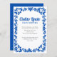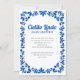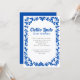 Celebrate the arrival of your little one with this beautiful "Cielito Lindo" baby shower invitation. Featuring a vibrant blue floral border inspired by traditional Talavera patterns, this design adds a touch of Mexican charm to your special occasion. The elegant script for "Cielito Lindo" and clear "Baby Shower" text make it easy for guests to read. This invitation is perfect for honoring expectant parents Maria and Carlos Guadalupe, and setting a festive tone for your event. It's an ideal choice for a memorable baby shower celebrating new beginnings. this is part of a set that has books for baby and responce card for a more formal feel.