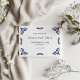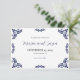 This Mexican Talavera Blue Floral Minimalist Wedding Save the Date design features a minimalist approach with delicate, symmetrical blue floral motifs placed in each corner and along the edges. The small, leaf-like shapes create a sense of movement while maintaining an airy, open space in the centre, allowing for ample text placement. The simplicity and elegance of the pattern evoke traditional Talavera tiles, giving the design a classic Mexican artisanal feel.