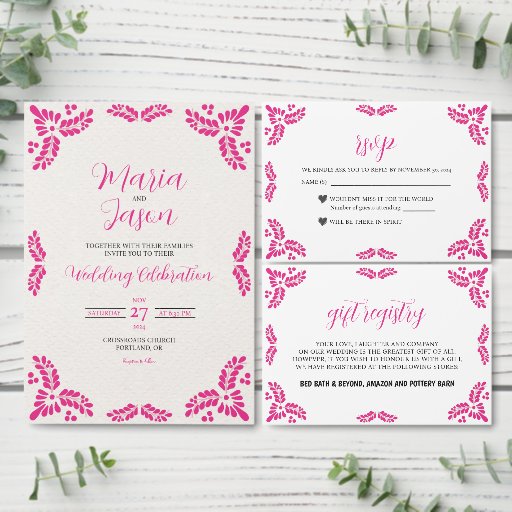 Mexican Talavera Pink Floral Minimalist Wedding Invitation