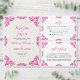 This Mexican Talavera Pink Floral Minimalist Wedding Invitation design features a minimalist approach with delicate, symmetrical pink floral motifs placed in each corner and along the edges. The small, leaf-like shapes create a sense of movement while maintaining an airy, open space in the center, allowing for ample text placement. The simplicity and elegance of the pattern evoke traditional Talavera tiles, giving the design a classic Mexican artisanal feel.