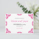 This Mexican Talavera Pink Floral Minimalist Wedding Save the Date design features a minimalist approach with delicate, symmetrical pink floral motifs placed in each corner and along the edges. The small, leaf-like shapes create a sense of movement while maintaining an airy, open space in the center, allowing for ample text placement. The simplicity and elegance of the pattern evoke traditional Talavera tiles, giving the design a classic Mexican artisanal feel.