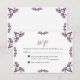 This Mexican Talavera Purple Floral Minimalist Wedding RSVP Card design features a minimalist approach with delicate, symmetrical blue floral motifs placed in each corner and along the edges. The small, leaf-like shapes create a sense of movement while maintaining an airy, open space in the center, allowing for ample text placement. The simplicity and elegance of the pattern evoke traditional Talavera tiles, giving the design a classic Mexican artisanal feel.