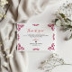 This Mexican Talavera Red Floral Minimalist Wedding Thank You Card design features a minimalist approach with delicate, symmetrical red floral motifs placed in each corner and along the edges. The small, leaf-like shapes create a sense of movement while maintaining an airy, open space in the center, allowing for ample text placement. The simplicity and elegance of the pattern evoke traditional Talavera tiles, giving the design a classic Mexican artisanal feel.
