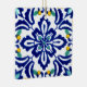 A Stylised blue and white floral pattern, with touches of orange, in the traditional Talavera style