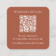 Manage your RSVP's easily with the help of this terra cotta RSVP card. By typing in your wedding website, a QR code will be automatically generated for you, allowing guests to RSVP online and keep up with all the details of your wedding. Perfect for a modern fall wedding, especially one with a Mexican or Southwestern theme. See the complete Mexican Terra Cotta Wedding Collection for more perfectly coordinated items for your special day.