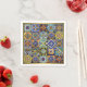 Package of 50 white paper cocktail napkins with an image of colourful Mexican tiles with an assortment of patterns with a gleaming brushed gold border. See matching coasters. See the entire Mexico Napkins collection in the HOME section.