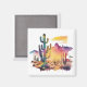 Abstract illustration of Mexican watercolor desert sunset with cacti plant, grass and mountain view