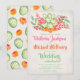 Fabulous Mexican Fiesta Wedding invitations with watercolor cactus, orange and pink flowers on a light grunge linen background.