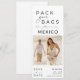 This Mexico Destination Beach Wedding Save the Date Card captures the essence of your romantic beach wedding. The photo frame in the centre showcases a beautiful image of the happy couple, providing a glimpse of your love story and the breathtaking setting where you'll exchange vows. Customise with your wedding details and mail to family and friends - telling them "Pack your bags" because we are going to Mexico!