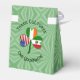 Personalised tent shaped favour box featuring shamrocks with a different flag in each leaf representing the Mexican, Irish and United States of America cultures. Above, the words THREE CULTURES. Below, ONE YOURNAME. Add your name, or someone else's, in the appropriate place, to create a personalised item or customised party favour box. Use for any holiday or occasion, but really cool for St. Patrick's Day, Cinco de Mayo, and 4th of July parties. Fun for birthdays, too.