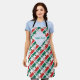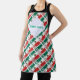 A print-all-over apron, diagonally tiled version of the Mexican Flag, with the word, MEXICO, underneath, in the colours of the flag. A fractal of white squiggly squares holds a place for a name, to create a personalised look for you or a gift. The Mexican flag is three vertical stripes. One is red, one is white, and one is green. The red stripe is in the centre and holds an emblem with an eagle. Great hostess gift and fun to wear at a family reunion.