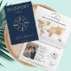 Modern and Elegant Mexico World Map Invitation Wedding Destination, like passport.Golden compass crest with monogram on the front page