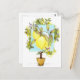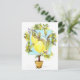 A colorful postcard featuring a lemon design inspired by Meyer lemons with a botanical style drawing in the middle, turquoise blue, and a stylized tree in the background illustrated with pencil and watercolor. Try this design on some of the other excellent products Zazzle offers!