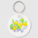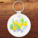 A cheerful and bright watercolor image of Meyer lemons on a blue and white striped kitchen towel. A delightful way to keep your keys together!