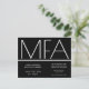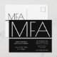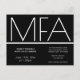 This is an MFA graduation party invitation postcard. This minimalist invitation is black and white. All the words and both colours can be customised.