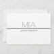 An invitation for a MFA graduation party. This invitation is silver and grey. The silver colour comes from the selected paper type. All the words can be customised.