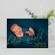 Introducing our elegant "hello world' baby announcement postcard. A modern template that allows you to customise with 10 of your favourite photos of your new baby. On the front of this card is space for a full landscape image which has a dark teal gradient around the edge of the design to emphasis the real gold foil calligraphy. On the reverse is space for 9 further photos arranged in a grid formation. Customise with your own text and names to complete this elegant and sophisticated keepsake that your family and friends will treasure for years to come.