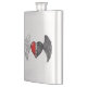 The product is a good size and came exactly as it was pictured. The lid is not attached to the flask, which could be dangerous on drunken nights... The print came out surprisingly well and looks very sharp. Would definitely recommend.