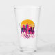 Retro style "Miami" text design illustration at sunset with sun and skyscrapers decoration in pink, yellow and purple