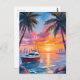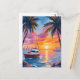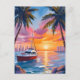 Miami Beach Boat Bay Sunset Watercolor Painting Postcard