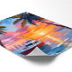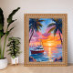 Miami Beach Boat Bay Sunset Watercolor Painting Poster