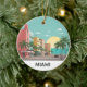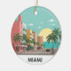 Soak up the sun with this vibrant ceramic ornament that celebrates the classic vibe of Miami. The design features a colourful illustration of the iconic Art Deco buildings and swaying palm trees along Ocean Drive. This ornament is a perfect keepsake for anyone who loves Miami's famous beaches, lively atmosphere, or unique architecture. It's a great gift for travelers or a fun way to bring a touch of the tropics to your decor.