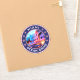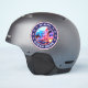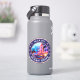 Miami Ocean Drive sticker with American flag colours and photo of Ocean Drive, rounded shape.