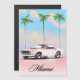 Miami Pink Sunset travel poster featuring a retro american muscle car against an evening sunset.