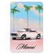 Miami Pink Sunset travel poster featuring a retro american muscle car against an evening sunset.