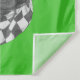 This design features a portrait of pug in with sunglasses and a black and white chequered scarf.