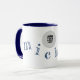 Add each one of the letters of your name to the templates to create a stylish and personalised blue mug, with your special photo... for him or for her