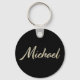 Ein sehr schöner edler personalisierter Button Schlüsselanhänger im whitegold Lettering Look auf schwarz für Michael.