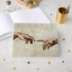 The Creation of Adam by Michelangelo Masterpiece Painting - The Creation of Adam is one of the most famous paintings in the world, created by master artist Michelangelo in Rome. The Creation of Adam is a classic fresco that Michelangelo painted in Rome's Vatican, on the Sistine Chapel, in 1511–1512. The Creation of Adam print on our gift is a portion of the fresco painting, showing the entire creation of Man in the Biblical Book of Genesis, where God (on the right) gives life to the first man, Adam (on the left). The painting shows the almost-touch of the hands, between God and Adam. The image is an iconic Renaissance painting. Michelangelo shows God as an old white-haired and white-bearded man, wearing a long white garment. Both God and Adam have their arms outstretched to each other, as if God is generating a spark of life into the new man Adam. The Michelangeo painting shows Man's likeness to God, showing God created humans in his own image.