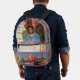 This original collage design backpack features Michelle Obama at a podium, layered with cut-out illustrations from chemistry, physics, and sociology textbooks.