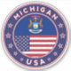 Michigan design with flag of Michigan and flag of United States, rounded shape.
