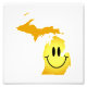 Generate smiles with this Michigan Face drawn on the Michigan map. This design places the face (exactly like traditional on the shape of Michigan. The Michigan map shape is coloured with the same yellow colours and shading as traditional There might not be such a cute, fun, and humourous way to show off your Michigan state pride as this Michigan Face superimposed onto the Michigan map. Make it obvious to everyone that Michigan makes you happy!