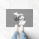 Modern farmhouse personalised doormat with your family name inside your state map. Faux burlap canvas texture background. Click Customise It to add your own text and images and create a unique one of a kind design!