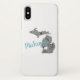 Michigan Floral Filled Silhouette With "Michigan" iPhone X Case. Michigan Floral Filled Silhouette With "Michigan" in cursive Typography. A great gift for any Michigander. Michigan silhouette filled with a poppy floral pattern in greys and blues with a white heart. Design by The Michigander.
