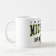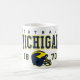 A bold vintage-style football mug design featuring classic Michigan football typography with a retro helmet illustration and collegiate colors.