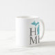 Stylish custom coffee mug features a typography design with "Home" text and Michigan state map. Click the Customise option to move the white heart city marker on both sides of the mug. You can position it directly over the city where you live or your hometown. Charcoal grey, aqua blue, and white colours.