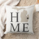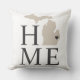 Stylish welcome pillow features a typography design with "Home" text and Michigan state map. The soft black / onyx heart city marker can be positioned over the city where you live via Customise. Beige, soft black, and white colours. A pattern of horizontal stripes dresses up the back of the pillow.