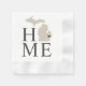 Stylish paper napkins feature a typography design with "Home" text and Michigan state map. The navy blue heart city marker can be positioned over the city where you live or your home town via Customise. Soft black / onyx, beige, and white colours.